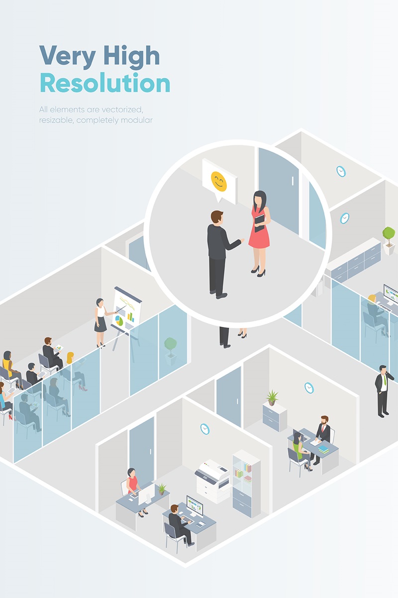 اتاق های ایزومتریک سه بعدی شامل بیش از 100 صحنه و عنصر است. مجموعه وکتور های اتاق شامل موضوعات مختلفی است: شهرداری ، عمومی ، تجاری و خصوصی و کارخانه ها. صحنه های آماده را انتخاب کنید یا با چند کلیک صحنه مورد نظر خود را ایجاد کنید!