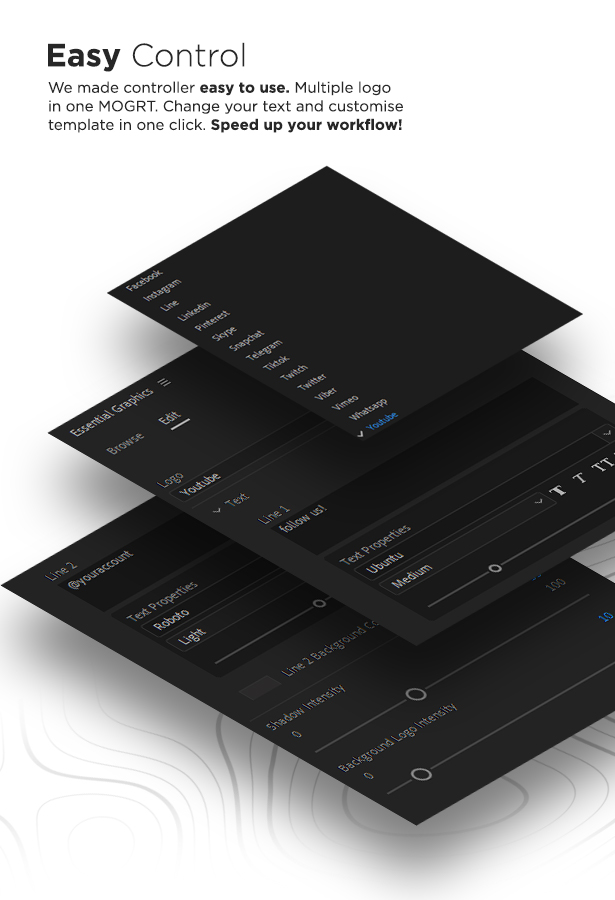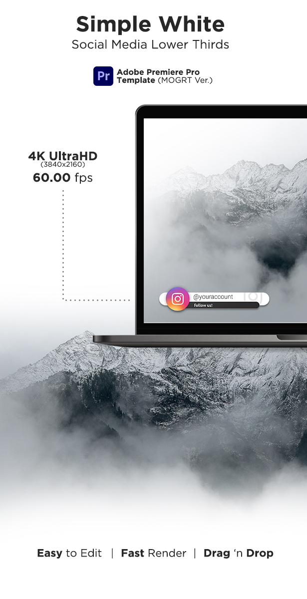 اگر بدنبال درج زیر نویس ساده برای معرفی کانال یا صفحه خود بر روی ویدئوهای خود هستید بهتر است از پروژه آماده پریمیر زیرنویس آماده شبکه های اجتماعی استفاده کنید. این قالب آماده پریمیر انیمیشن زیر نویس برای اکثر شبکه های اجتماعی محبوب مانند فیسبوک ، اینستاگرام ، توییتر ، یوتیوب ، تیک تاک ، واتس اپ و … را در خود جای داده و براحتی می توانید برای معرفی کانال یا پیج خود بر روی ویدئوهای خود استفاده کنید. برای هر نمایش 2 محل برای تغییر و جایگذاری متن وجود دارد.