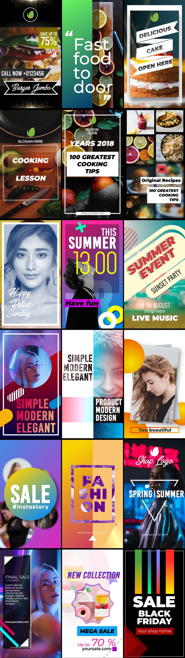 این بسته یک پروژه آماده افتر افکت است که شامل: 24 استوری اینستاگرام (1920 * 1080) و 24 پست (1080 * 1080). به راحتی و فقط با چند کلیک می توانید تصاویر یا فیلم ها را وارد قالب کنید و خروجی بگیرید. بدون نیاز به پلاگین ، آسان برای شخصی سازی ، طراحی مدرن و مرسوم است. محصولات ، رویدادها ، پست های وبلاگ خود را تبلیغ کنید ، افکار خود را به اشتراک بگذارید ، نقل قول های الهام بخش ، حقایق جالب و مفید. برای اینستاگرام ، فیس بوک و سایر رسانه های اجتماعی نیز می تواند مورد استفاده قرار گیرد. مخاطبان خود را تحت تأثیر این بسته پست و استوری اینستاگرام قرار دهید.